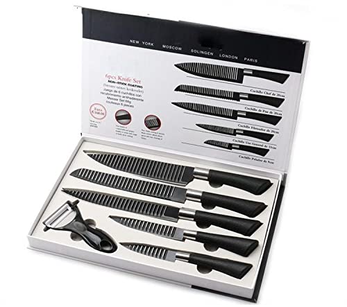 Generic - طقم ادوات مطبخ من الستانلس ستيل مكون من 6 قطع، طقم سكاكين مطبخ اسود غير لاصق، مجموعة هدايا 7699_ مع ضمان لمدة عامين للرضا والجودة