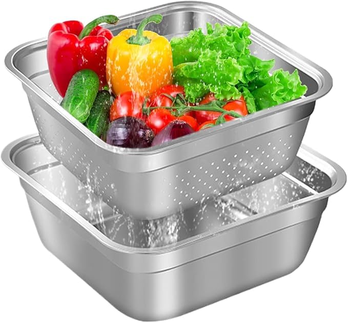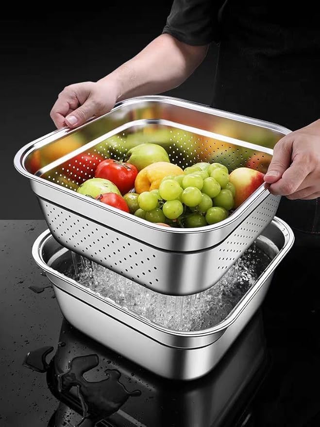 - Versatile pastry and strainer set; can be used for dough or easy washing vegetables and fruit into the same bowl;