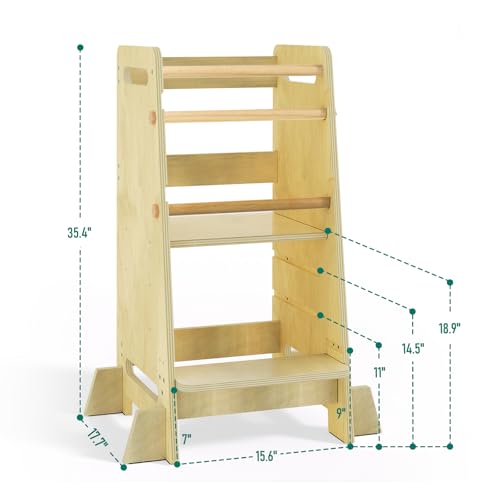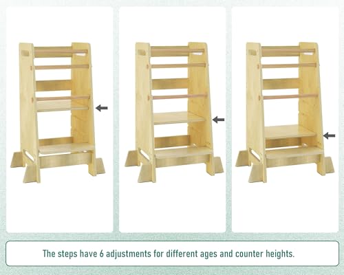 Wiifo - Kitchen Step Stool for Toddlers,Wiifo Adjustable Height Kids Learning Stool, Toddler Standing Tower(Natural)
