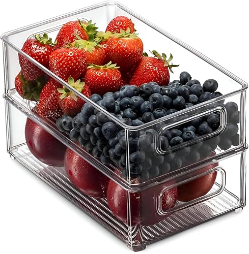 - This acrylic refrigerator organizer offers a versatile storage solution with stackable, transparent containers that feature side handles for easy carrying, making it ideal for organizing your fridge, kitchen, or pantry while providing a clear view of contents.