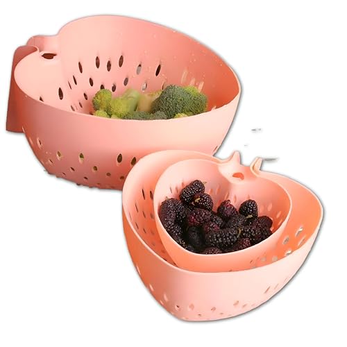 - The collection consists of three versatile plastic strainers designed for draining fruits and vegetables, effectively catering to a variety of kitchen needs. Each strainer comes in different sizes, making them adaptable for any cooking task, whether you are rinsing fruits, draining pasta, or preparing salads for family and friends. The unique design allows for both utility and aesthetic appeal, bringing functionality and charm to your cooking environment.