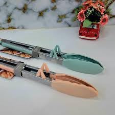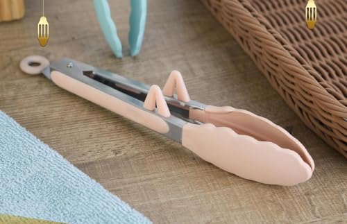 Kitchen Tongs with Silicone Tips, Stainless Steel, Mint Green and Pastel Pink