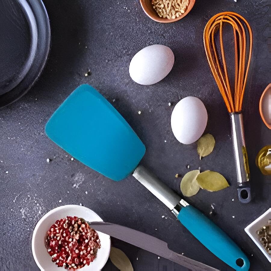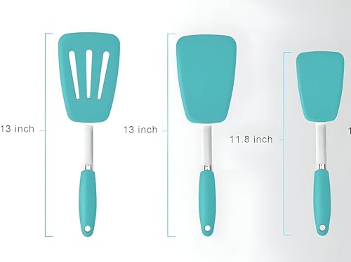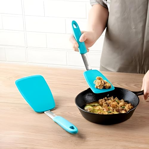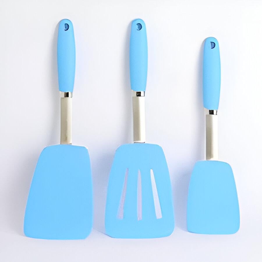 Generic - مجموعة ادوات المطبخ - مجموعة قلابة من السيليكون الفاخر مع ملعقة مسطحة مريحة وملعقة خلط مصممة لاداء الطبخ الاحترافي والتعامل مع الطعام بدون مجهود، لون ازرق فاتح
