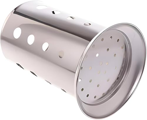 - This stainless steel utensil holder features a modern circular design with strategic ventilation holes, enhancing both airflow and aesthetic appeal, making it an elegant addition to any contemporary kitchen setup. Its durable structure ensures long-lasting performance and stability on countertops, effectively organizing various kitchen tools and cutlery while giving your space a sleek, professional look.