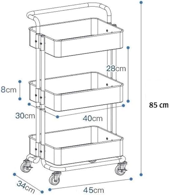 Generic - عربة بعجلات للمطبخ، رف منظم متعدد الاغراض، رف منظم متعدد الاغراض، عربة تقديم بعجلات للمكتب والحمام والمطبخ 85 × 42 × 35 سم (بينك)