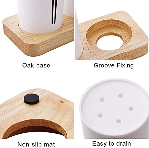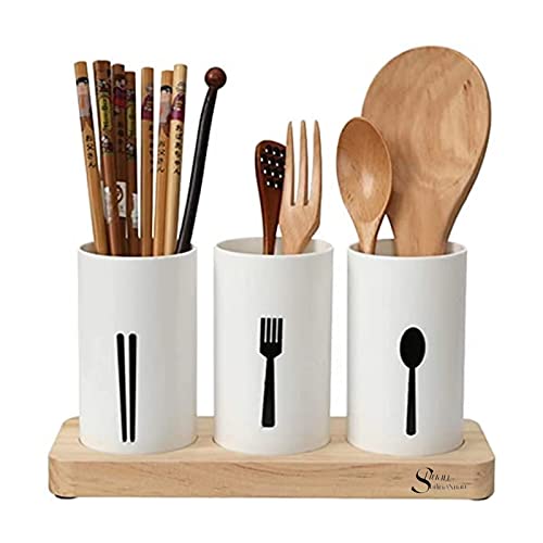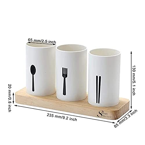 HuanShiJingXuan - Kitchen Utensil Caddy, Flatware Organizer with Wood Base Flatware Organizer with Wood Base,Caddy Utensil Holder,Countertop Kitchen Utensil Organizer Flatware Caddy
