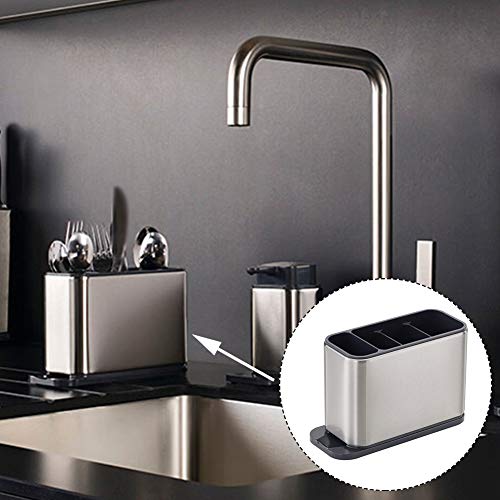 Xiaokeis - Kitchen Utensil Holder for Countertop Flatware Organizer Utensil Crock Holder Caddy Anti Slip Drip Tray Stainless Steel Flatware Cutlery Drainer Home Kitchen 4 Divider Drip Tray,8.27x3.54x5.39 inch(1)