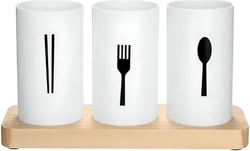 Generic - رف أدوات المطبخ لتخزين آمن وأنيق لأدوات الطبخ وأدوات تناول الطعام والتقديم، كامل بقاعدة خشبية لإضفاء لمسة طبيعية