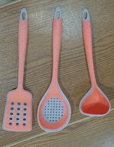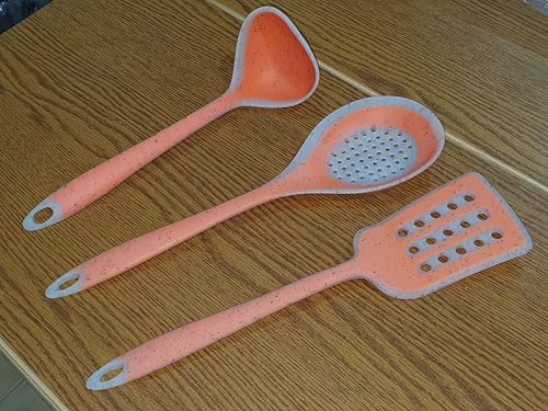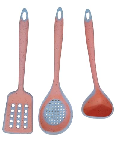 Generic - Kitchen Utensil Set, 3-Piece Cooking Tools, Pink and Grey Speckled Design with Slotted Spatula, Strainer Spoon and Ladle