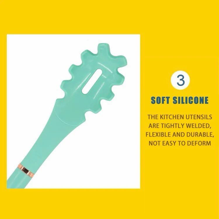 Generic - Kitchen Utensil Set Tools Silicon Serving Spoon Set -6 Pieces (5 Pieces +Stand) -Mint Green