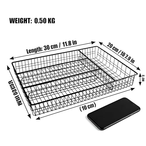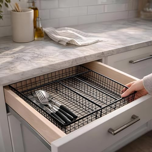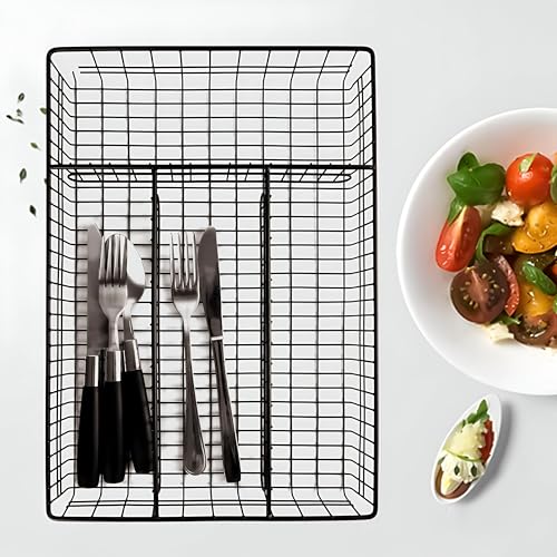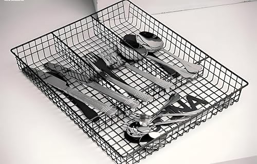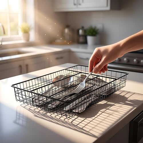 Generic - Kitchen Utensil Tray - Black Metal Organizer with Four Divided Sections for Forks, Knives, and Spoons, Perfect for Modern Kitchens