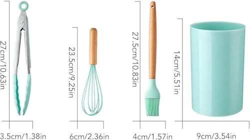 - مجموعة أدوات طهي متكاملة: تتضمن 7 قطع من أدوات المطبخ الأساسية - ملعقة، سباتولا، ملقط، مضرب، مغرفة، فرشاة، وملعقة مخرمة مع حامل تنظيم عملي