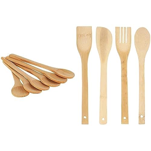 Generic - ملاعق خشبية للمطبخ - مجموعة من 6 قطع - حجم تعليق الشاي + ملاعق طبخ خشبية من اجفا، مجموعة من 4 قطع - لون بني