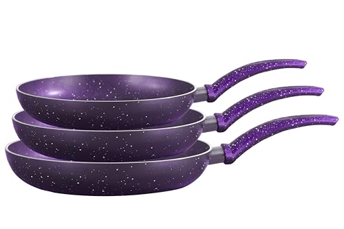 Kitchenia - طقم أواني طهي جرانيت من كيتشينيا مقاس (20-24-28) لون أرجواني، 3 قطع