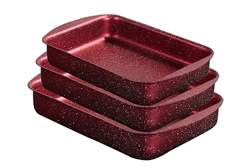 Kitchenia - KITCHENIA TAJEN 3 - Granite Cookware SET 3 PIECES TAJEN TRAY (1-3-5) - DARK RED COLOR