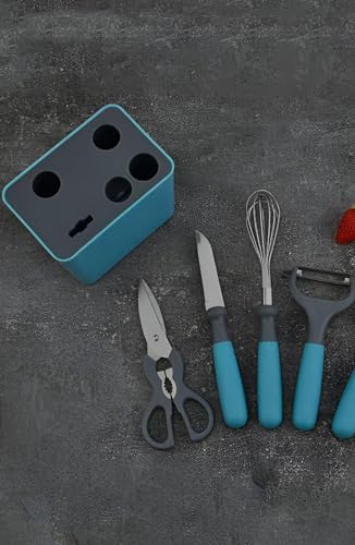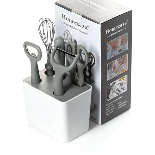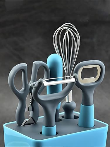 - Includes knife, whisk, bottle opener, peeler, scissors, and a stylish stand for perfect organization.