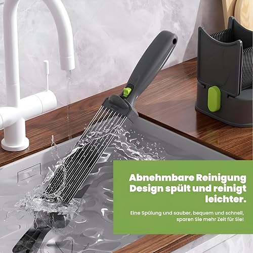- The ergonomic handle enhances user comfort during extended use, reducing hand fatigue while ensuring a secure grip. Its adjustable thickness feature allows customization of slice thickness, accommodating different recipes and preferences, thus providing versatility for meal preparation.