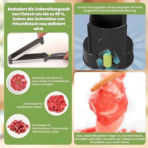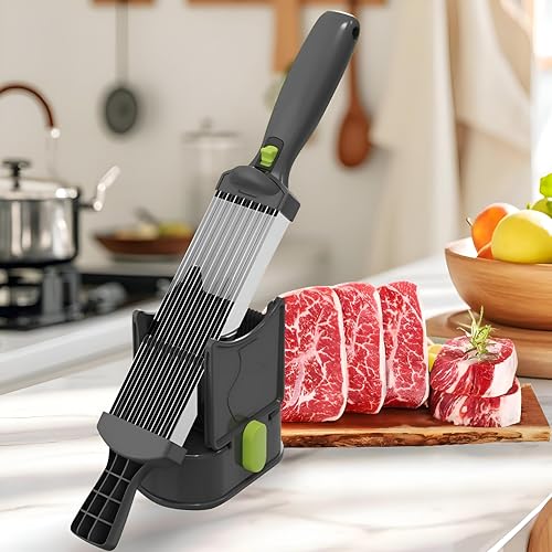 - This manual meat cutter made of high-quality stainless steel offers precise and consistent slicing capabilities, allowing users to cut up to 18 perfectly even slices with a single movement. Its adjustable blade ensures fine and uniform cuts suitable for various meats and vegetables, making it ideal for both home cooks and professional chefs.