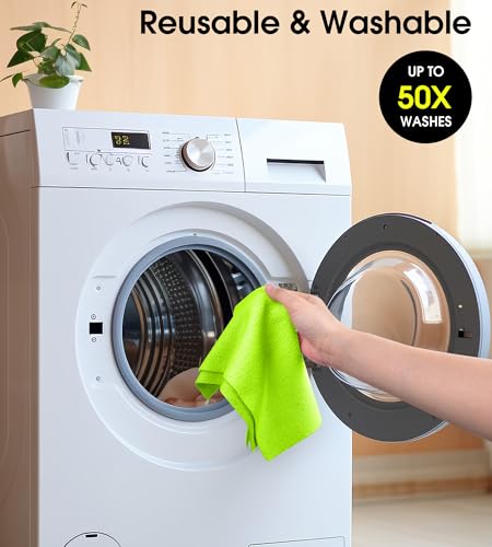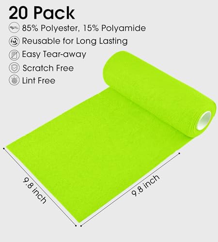 KitchLife - KitchLife Microfiber Cleaning Cloth Roll - Tear-Away Towels, Lint-Free, Reusable, Washable, 20 Sheets for Kitchen, Car, Dishes, and Sensitive Surfaces (Neon Green)