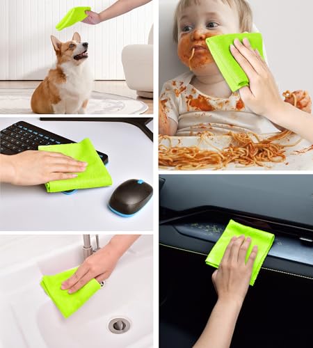 - [Premium, Lint-Free & Scratch-Free] Made from high-quality microfiber fabric, these towels are soft, lint-free, and scratch-free, making them perfect for all surfaces, including sensitive ones. Use them confidently on countertops, dishes, and even delicate automobile interiors.