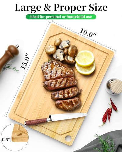 Kitsure - لوح تقطيع من الخيزران - ألواح تقطيع خشبية متعددة الأحجام للمطبخ، أدوات مطبخ عملية مع تجاويف عميقة للسوائل، لوح تقطيع طبيعي للتقطيع والتقديم من كيت شور، 38.10 × 25.40 سم