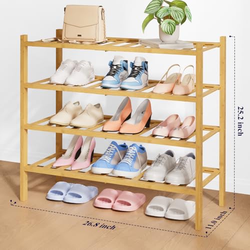 - MULTIFUNCTIONAL STORAGE: More than just a shoe organizer for closets! This versatile shelf can be used as a storage rack for books, bags, clothes, or decorative items. The natural bamboo material showcases a naturally smooth texture with a fine, delicate grain that adds warmth and elegance to any interior like modern, rustic, and Scandinavian styles.