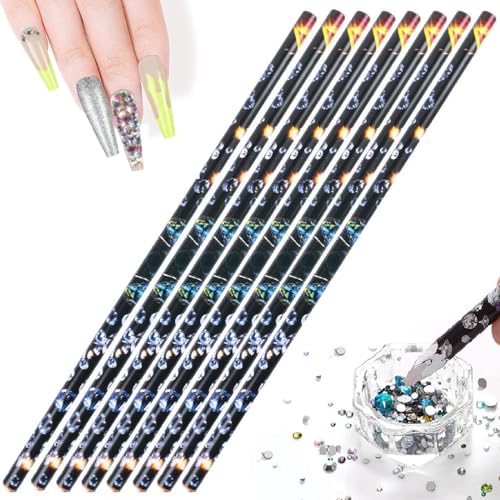Kiuiom - Kiuiom Nail Art Wax Pen, Wax Pencils Diamond Painting, Gemstones Crystals Rivets Picker, 8 Pieces Nail Point Diamond Drill Pen Nail Design Pens Rhinestone Picker Tool for Diamond Painting Nails