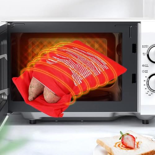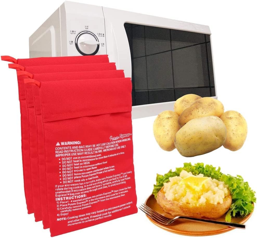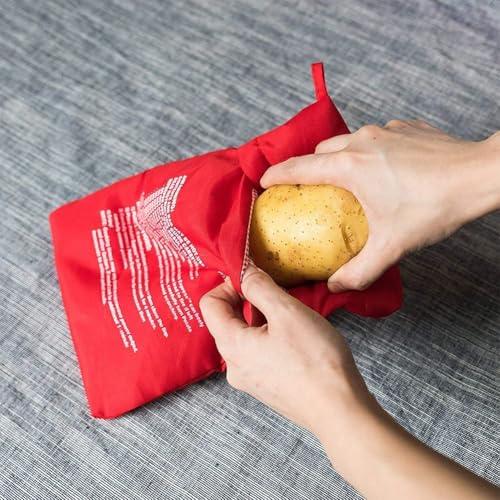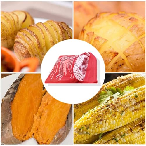 Kiuiom - Kiuiom Reusable Microwave Potato Bags, 4 Pack - Silicone, Red, Drawstring Closure, Washable, Perfect for Potatoes, Sweet Potatoes, Corn on the Cob, Bread, Tortillas