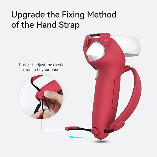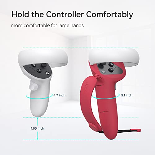 KIWI design - كيوي ديزاين غطاء مقابض وحدة التحكم مع فتحة بطارية قابلة للتعديل احزمة للمفاصل مناسب للايدي الكبيرة متوافق ملحقات كويست 2 احمر .