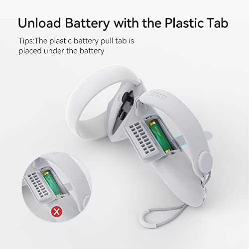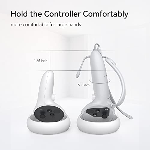 KIWI design - غطاء مقابض تحكم بتصميم KIWI مع فتحة بطارية متوافقة ملحق Quest 2 قابل للتعديل أحزمة المفصل مناسب للأيدي الكبيرة رمادي- أبيض من كيوي ديزاين رغوة الذاكرة سيليكون