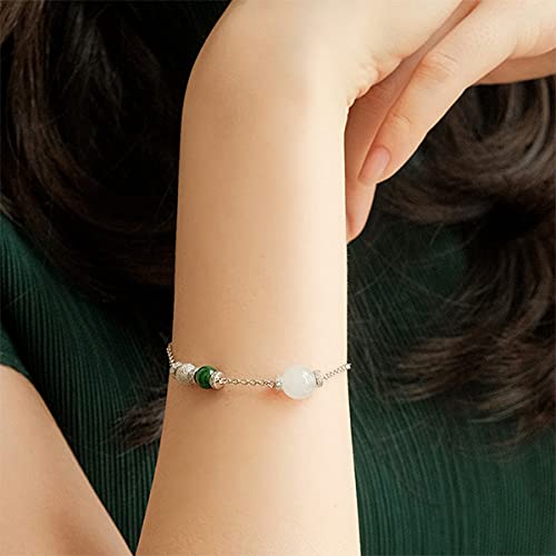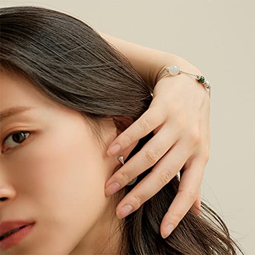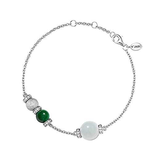KJADE - KJADE 【】White & Green ite Silver Bracelet 《ForeverV3》《Grade A》, Sterling Silver , jadeite