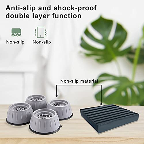 KKL - 4 قطع من دعامات الغسالة بخاصية الغاء الصدمات والضوضاء - وسادات غسالة ومجفف (4 وسادات + مستوى) وسادات قدم مطاطية مضادة للانزلاق ومضادة للاهتزاز لجميع الغسالات