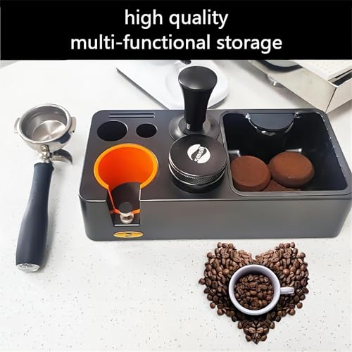kkooplay - Espresso Tamping Station, 8 in 1 Espresso Knock Box Espresso Accessories Organizer Box for Organizing 51-58 mm Masher, Dispenser, Filter Coffee Accessories, Non-Slip Plastic Base