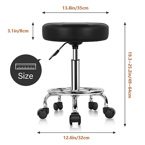 KKTONER - KKTONER Round Rolling Stool Chair PU Leather Height Adjustable Swivel Drafting Work SPA Shop Salon Stools with Wheels Office Chair Small (Black)