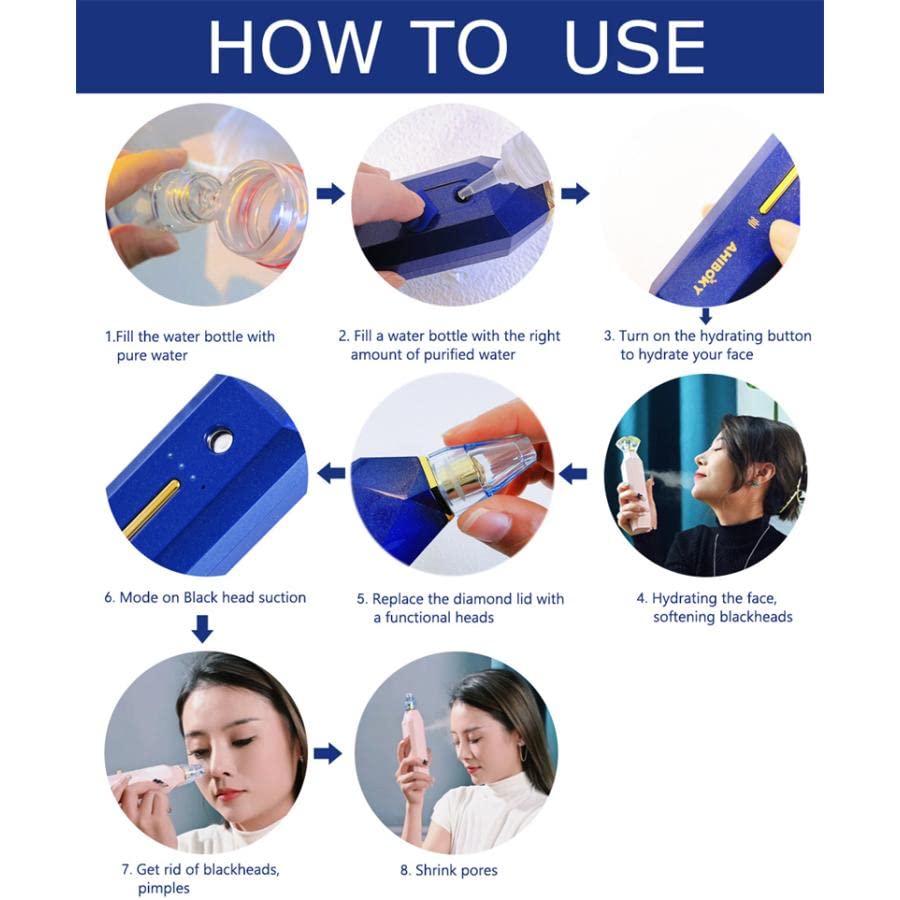 - 【2-in-1 Multifunction Blackhead Remover and Facial Sprayer Hydration】Suitable for all skin types, Buying 1 facial cleaner can meet 2 your skin cleanser needs. The Vacuum Blackhead Removal can clean and effectively remove blackheads, whiteheads, acne, grease, pimple, makeup residues. Facial Sprayer Hydration can give your face SPA Steamer, open and Shrink pores, make your face to get Aerobic respiration.