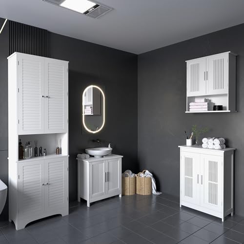 - Selected Material: Made of MDF frame, this bathroom vanity cabinet is durable for use. The surface is painted, and double doors with slatted shelves design, make it to prevent items from getting wet, suitable for bathroom use.