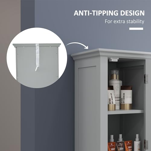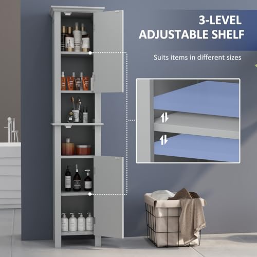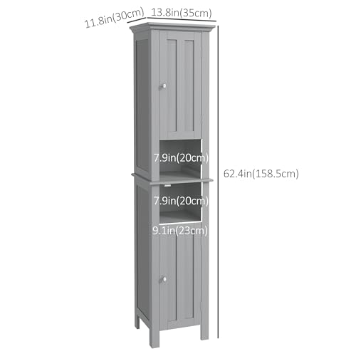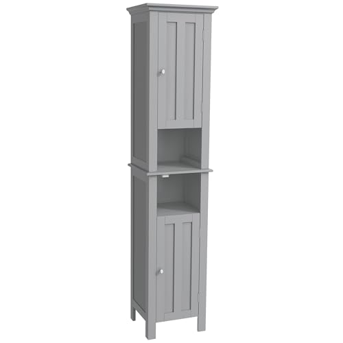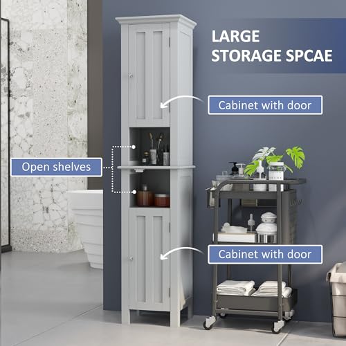 kleankin - kleankin Tall Bathroom Storage Cabinet, Floor Standing Bathroom Organizer, Linen Cabinet with Open Shelves and Cupboards, Grey
