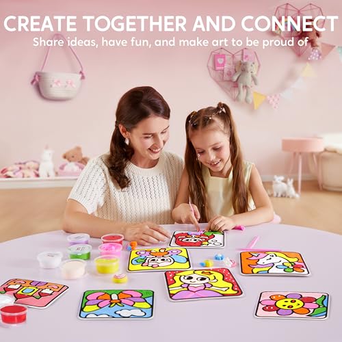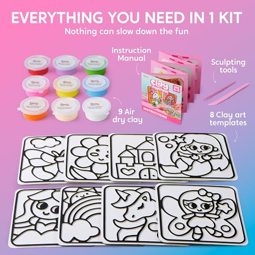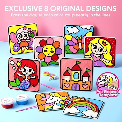 Klever Kits - لوحة تلوين بالصلصال الجاف بالهواء من كليفر كيتس، مجموعة صلصال هوائي بتصاميم أصلية مزودة بحواف محفورة للتعبئة، مادة سهلة الاستخدام غير سامة للأعمال الفنية، للأطفال من عمر 4 إلى 9 سنوات، طقم من 8 لوحات