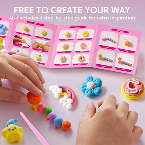 - دليل الإبداع المجاني: يأتي مع 9 ألوان نابضة بالحياة وغير لزجة من الصلصال الناعم الجاف بالهواء. بعد الانتهاء من اللوحات الفنية الثمانية، يمكن للأطفال استخدام الصلصال الإضافي لاتباع أفكار خطوة بخطوة أو إطلاق العنان لخيالهم.
