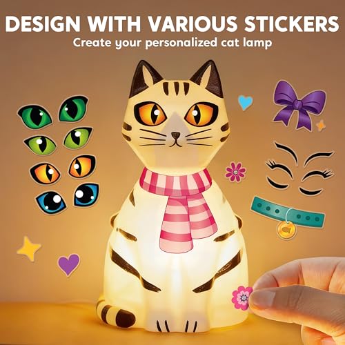 - المكونات المتضمنة: مصباح القط، 12 وعاء طلاء مضيء، 2 فرشاة، لوحة، ورقة ملصقات للزينة، ملصقات نفخة