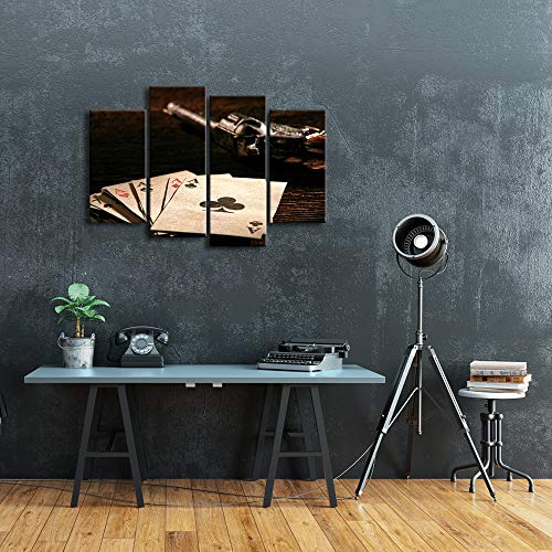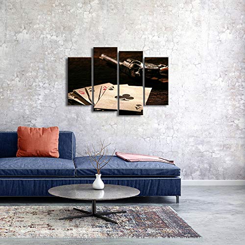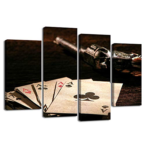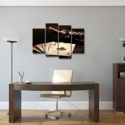 KLVOS - 4 Piece Poker Cards Canvas Wall Art Vintage Casino Concept Playing Cards Poker Picture for Pub Bar Casino Wall Decoration Modern Home Decor Ready to Hang 32 inch x 48 inch (Poker Cards)