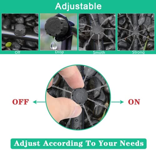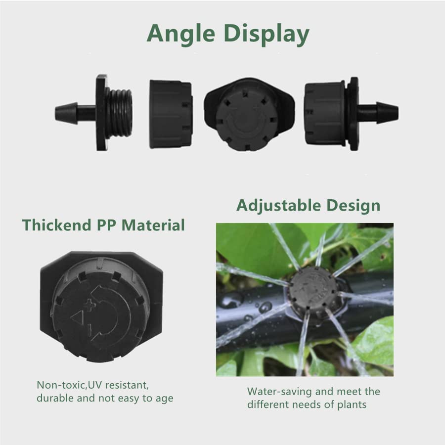- 💧 Adjustable Design: The Micro Emitter Dripper has 8 spray holes. The dripper can be adjusted individually by rotating the adjustable switch to meet the different needs of various plants for water. The water flow can be adjusted or it can be cut off,the drippers dont influence each other.