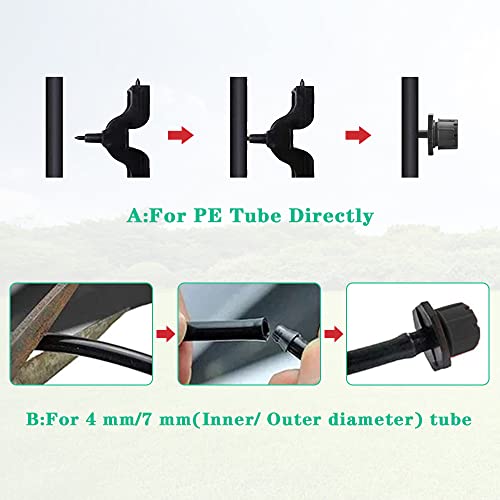 - 💧 How to Use: These Adjustable Emitter Drippers are suitable for 4 mm/7 mm(Inner/ Outer diameter) tube. After installation and connection, they can be closed by turning to the left,and turn to the right to adjust the water flow according to your requirements.