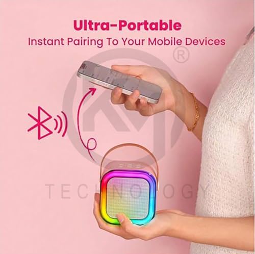 Generic - مكبر صوت بلوتوث BDT_AN-12 من كيه ام تكنولوجي مع ضوء RGB يدعم المكالمات بدون استخدام اليدين، محرك USB، بطاقة تي اف، AUX، راديو اف ام، بدون ميكروفون - بينك
