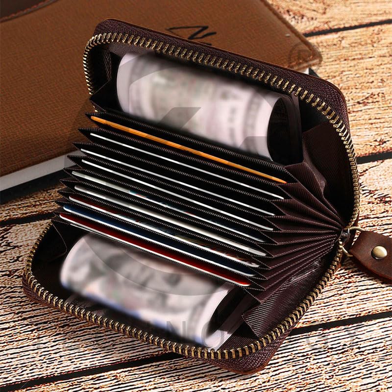 Generic - KM Technology Mont_Blanc Luxury Men's Wallet Fashion Design Multifunction Wallet Flip Wallet with Zipper Wide Credit Card Slots and ID Card Slots - Perfect Gift for Modern Man and Women - cafe