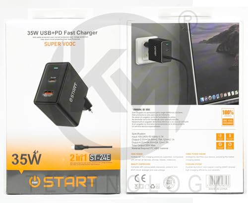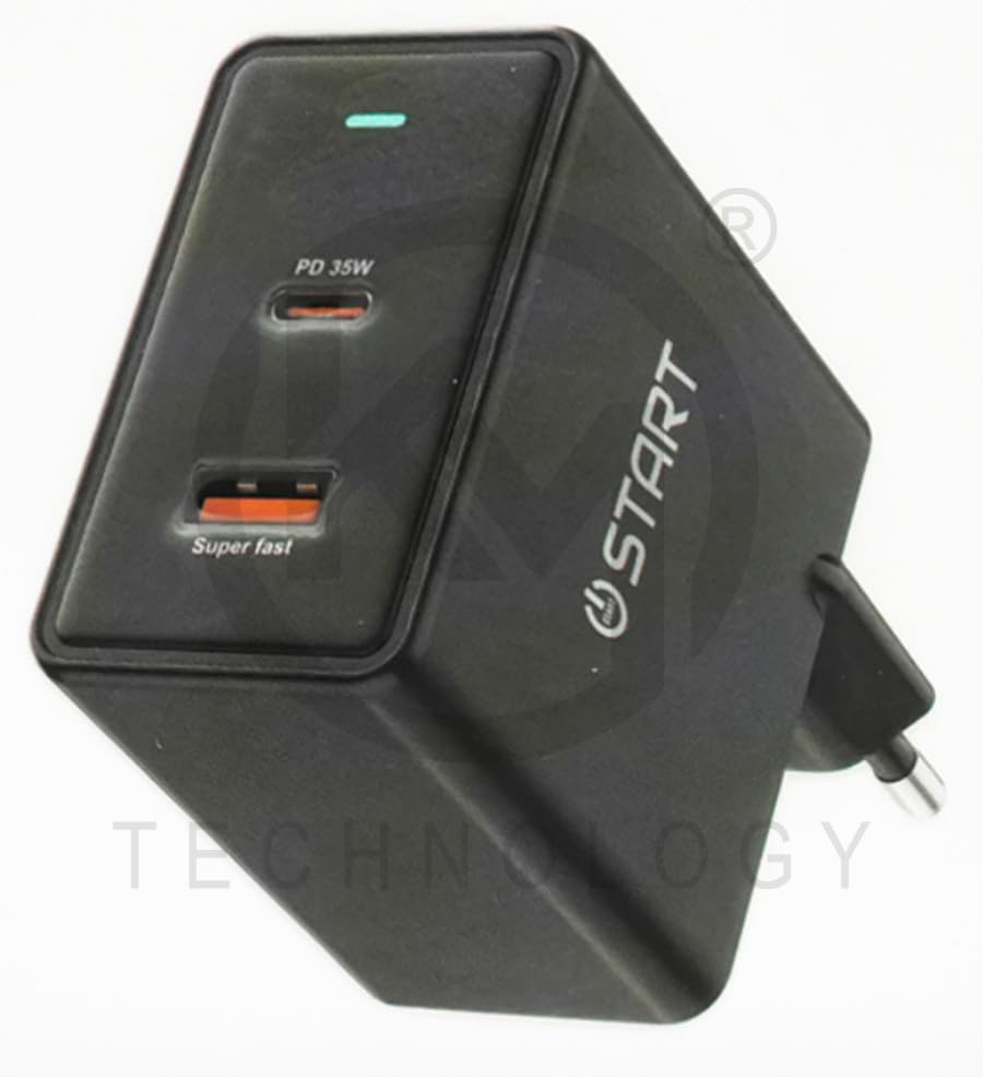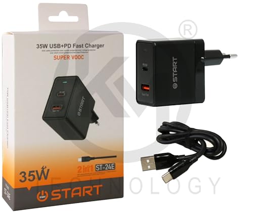 Generic - KM Technology Start ST-24E Super Fast Charger GaN 35W Super Vooc Dual Port (USB 20W & PD 35W Type-C) Comptible with Galaxy, Oppo, iOS With cable USB To Type-C 1m - Grey