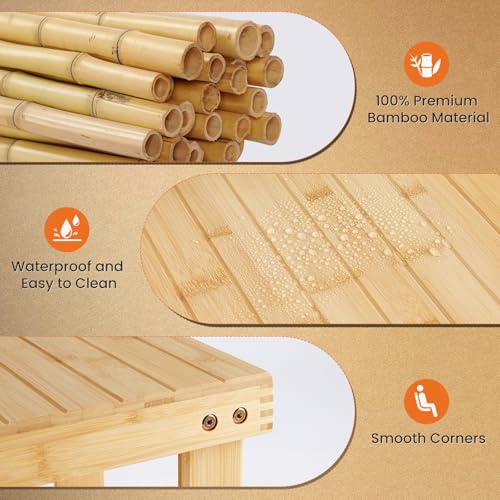 - 【Crafted from Premium Bamboo – Built to Last】Constructed from 100% natural bamboo, KMFurnila bench offers unmatched durability and a timeless aesthetic. Enhanced with a waterproof finish, it resists wear and tear and is easy to clean, ensuring it stays looking new for years.