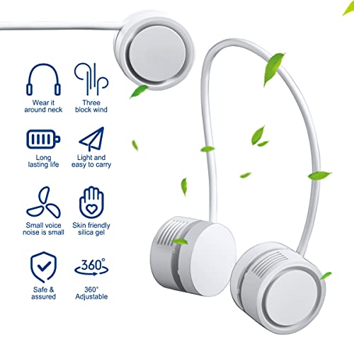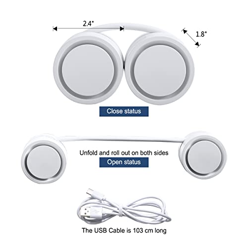 KMYC - مروحة رقبة محمولة قابلة للطي من كيه ام واي سي، مروحة تبريد قابلة لاعادة الشحن بمنفذ USB، مروحة صغيرة كهربائية صغيرة قابلة للارتداء بدون شفرات للمكتب والسفر والرياضة في الهواء الطلق