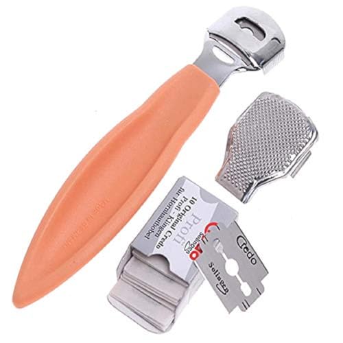 KNAFS COLLECTIONS - ماكينة حلاقة الجلد الميت من الستانلس ستيل لازالة الجلد الميت مع فرك الجلد و10 شفرات للعناية بالقدم وازالة خلايا الجلد الصلبة والمتشققة من كنافس كوليكشن (بلاستيك بشفرات)