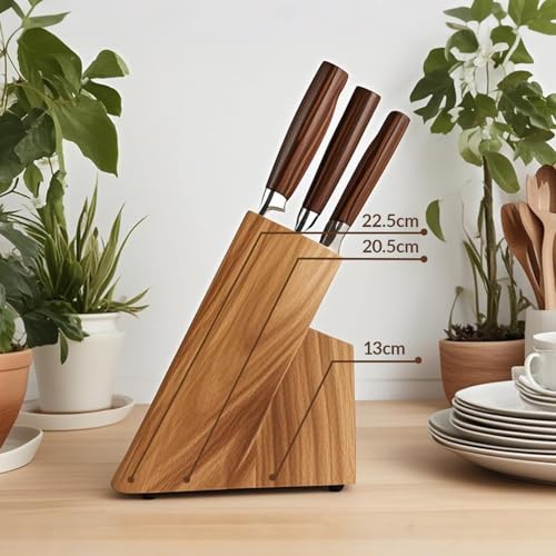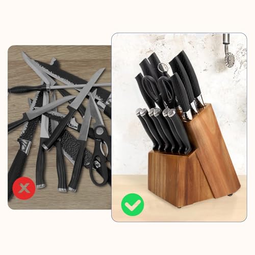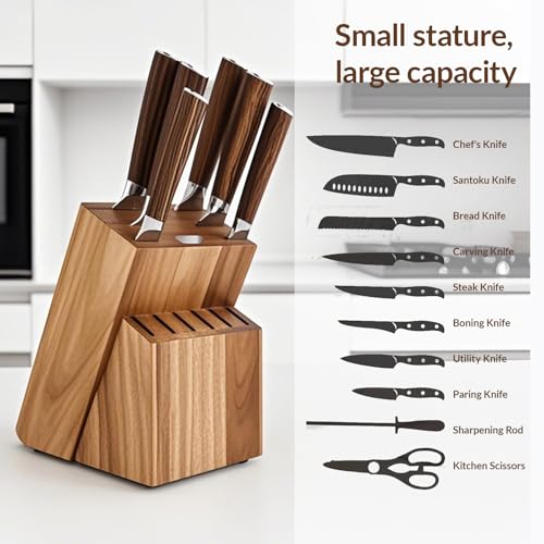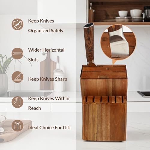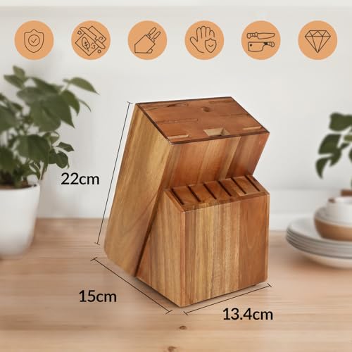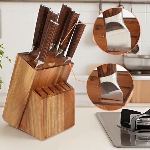 Atliberswo - حامل سكاكين مصنوع من خشب الأكاسيا، يحتوي على 14 فتحة مخصصة لسكاكين الطهاة، ويُباع بدون سكاكين، ومناسب لوضع 14 سكينا بالإضافة إلى مبرد الشحذ